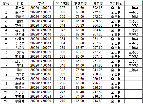 我院2021-2022学年度研究生学业奖学金评选已经结束,现将评选结果公示如下,公示期2022.9.24-2022.9.26。如对评选结果有异议,请于公示期内反馈至sjb世俱杯中国官网入口学科建设办公室,地点:第一办公楼512,电话:87655766。