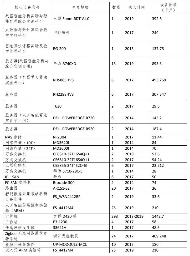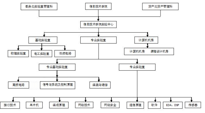 实验中心下设信息技术基础、计算机科学与技术专业、网络工程专业、软件工程专业、电子信息专业等5个实验模块和一个综合性创新人才培养基地。近年来,学校对实验中心的建设给予了大力支持,实验教学设备及环境得到巨大改善,在人才培养模式、教学方式方法、人才培养质量、师资队伍建设等方面均取得很大的成绩,起到了很好的示范效果。总资产由组建之初的 316 万元增加到 1099.2万元,建筑面积由 660 平方米增加到 2648平方米,现有仪器设备1045台套,其中价值10万元以上的贵重仪器 32台套。中心年可接待全校10余个专业超过84000人次。