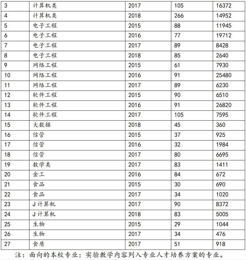 (一)示范中心实验教学面向所在学校专业及学生情况