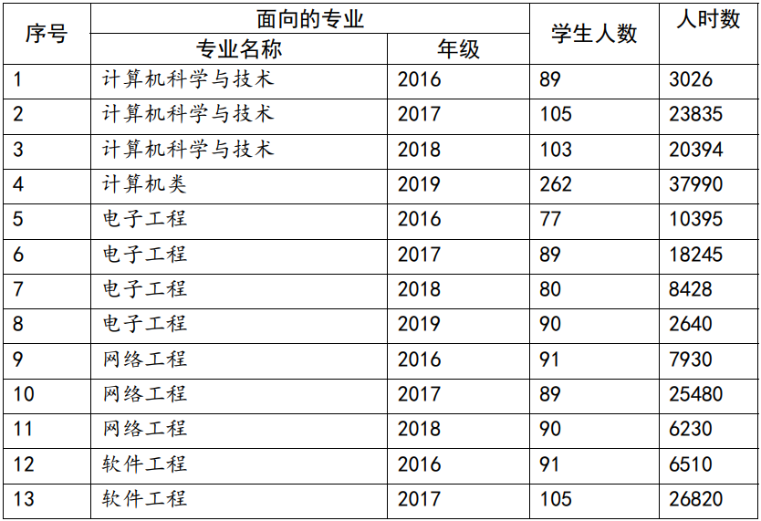 业为首批认证专业,其他四个专业逐次跟进。按照社会需求为导向、OBE教学理念为指导,修订了计算机科学与技术、软件工程、网络工程、电子信息工程、数据科学与大数据五个专业的培养计划和所有课程的教学大纲。