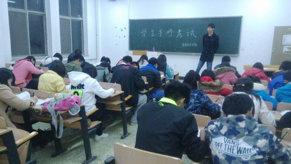 为建立优良的学风以及加强2014级学生对我校学校各项规章制度的了解,sjb世俱杯中国官网入口学生会于11月11日在北三教B区210-217教室,面向全体2014级新生,开展了《学生手册》考试活动。