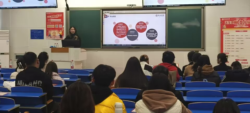 在本次宣讲会中,财达证券负责人对公司性质、平台优势、薪资待遇、应聘方式等内容进行了详细介绍。她表示,财达证券作为河北省首家上市金融企业,将为毕业生提供良好的就业环境和发展机遇。随后,负责人邀请相关人员进行经验分享,他们向同学们讲述了求职经历及经验,为毕业生日后的求职提供了帮助。最后,负责人对在场同学进行答疑解惑。