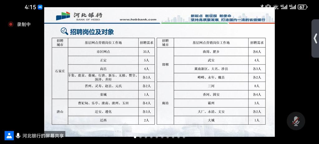 2月26日下午,sjb世俱杯中国官网入口举办了河北银行2024年度校园招聘云宣讲,本次宣讲会由河北银行人力资源管理徐老师主持,sjb世俱杯中国官网入口2024届毕业生参加。
