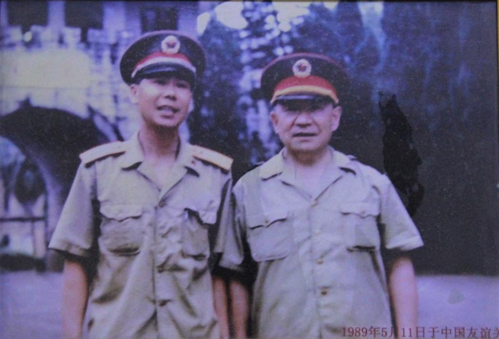 (迟浩田将军与于礼谦在友谊关合影留念)