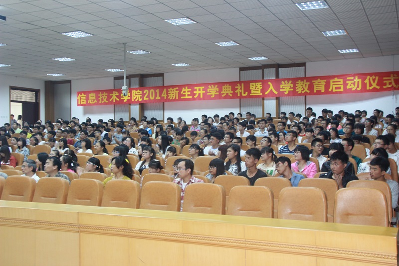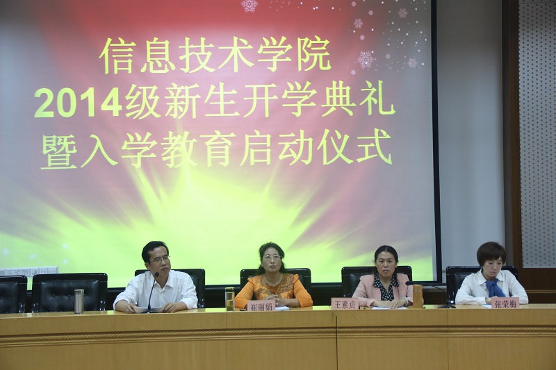 开学典礼伴随着激昂的国歌拉开了序幕。王素贞首先代表学院向2014级全体新生的到来表示热烈的欢迎和衷心的祝贺,对学院的基本情况、学科发展前景作了详细的介绍。从确立奋斗目标、学做人做事等方面表达了对新生的寄托和希望。副院长张荣梅从培养目标与教学计划、选课与重修、转专业与专业分流、双学位与辅修专业等教学管理工作,向新生进行了详细的阐述。学院党总支书记崔丽娟告诫新生,要尽快完成从中学生到大学生的转变,更好地度过大学生活。她殷切希望新同学:一注重内心修炼,塑造健康人格。拥有正确的价值观,养成良好的做人的基本素养。只有做人成功,才能做事成功。二是做一个有知识的人。树立远大志向,给学习助力,勤奋努力,持之以恒,敏而好学,善于思考,夯实坚实的理论基础和精湛的专业技能。三是身体力行,培养能力。通过实践,拓宽视野,培养提高综合素质,为将来就业奠定扎实基础。教师代表、在校生代表和新生代表分别作了发言。